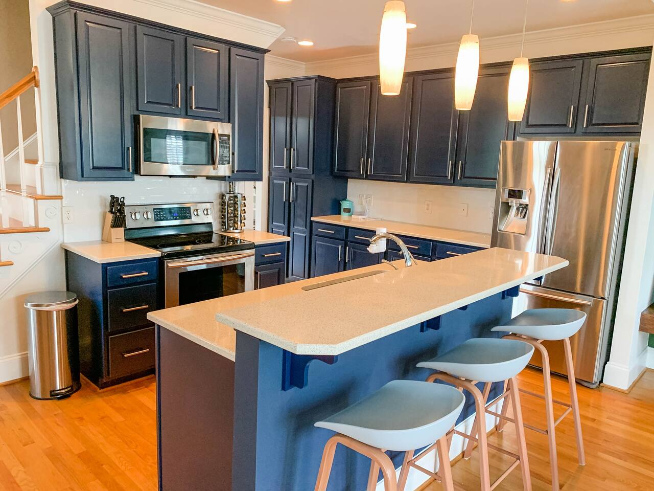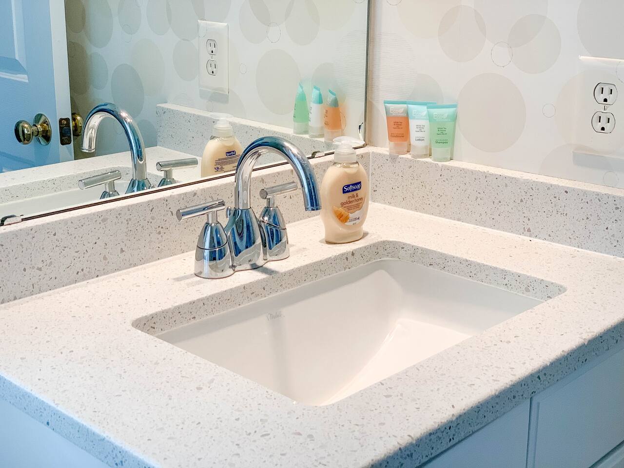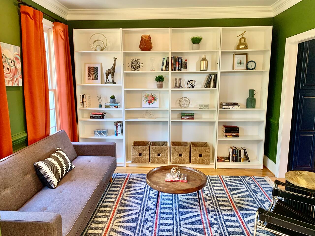There is one additional sleeper sofas for larger groups. The sleeper sofa in the library sleeps one (1). The library is in a separate sectioned off room. As the morning light pours through our custom plantation shutters enjoy cooking in our fully stocked kitchen (see photos). Kitchen has custom cabinetry, subway tile backsplash, quartz countertops and stainless steal appliances. With 10' ceilings and an open concept- you will love how spacious our home feels. The kitchen flows into the stunning living-dining room combination. Warm up by the gas fireplace, watch a movie on the 55" Roku SmartTV and take your breakfast on our floating bench. Enjoy one of our books in our second living area- the perfect place to read or play games. Spend time on the brick patio at the front of the home or on the back deck. The Master bedroom has a beautiful King sized canopy bed. Watch a movie on the 43" Roku TV or get some work done on the in room desk. Be careful not to get lost in the large custom built master closet. The master bathroom has a double sinks, shower and 10" ceilings. Bedroom number two has a comfy queen bed and lots of space. It also has a private bathroom and walk-in closet. The living room has a queen sized sleeper sofa (sleeps 2). The library has a sleeper sofa that best sleeps 1 person. It’s a bit larger than a twin when laid out.