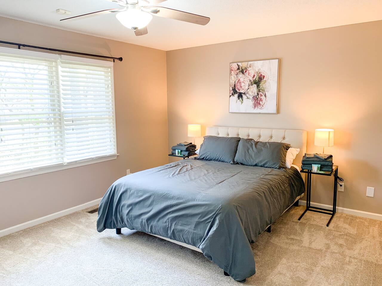 First floor: -This home has a relaxing and private back deck. -The kitchen is stocked and ready for you to use. -Open-concept living room and eat-in dining. -The living room has a smart TV and queen-sized sleeper sofa. -Half bath on first floor. 2nd Floor: - Bedroom #1: King sized bed & large bathroom -Bedroom #2: Queen sized bed, twin bed, large walk-in closet & large bathroom Renting this home gives you full access to the townhouse. You will not be sharing this with the owners. You have two free parking spaces in front of the townhouse. (The garage is not a part of this rental. The garage is rented out as a self-storage space and not accessible to guests.)