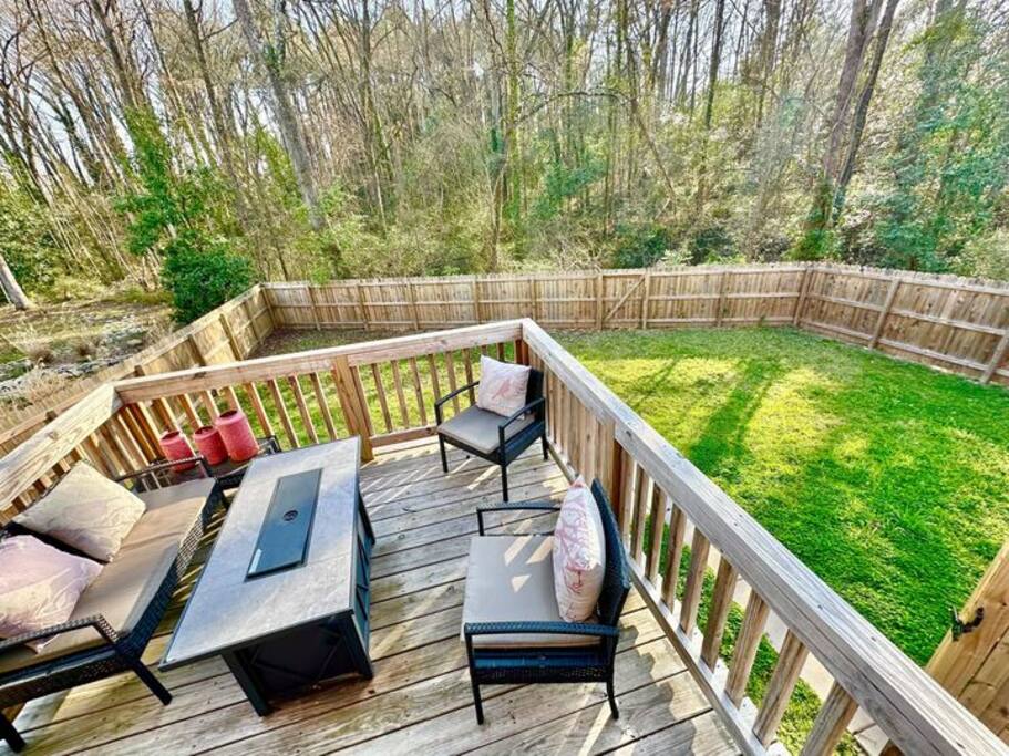 Living room: - Queen sized sleeper sofa - Electric Fireplace Kitchen: -Fully stocked kitchen – including Blender, Rice Maker and wine glasses -Pac-Man Arcade Game! Bedroom #1: King sized bed with large full sized bathroom Bedroom #2: Full sized bed with twin sized Trundle bed Bedroom #3: Full sized bed with twin sized Trundle bed Back porch: Perfect for relaxing and enjoying time together. Private fenced in backyard.