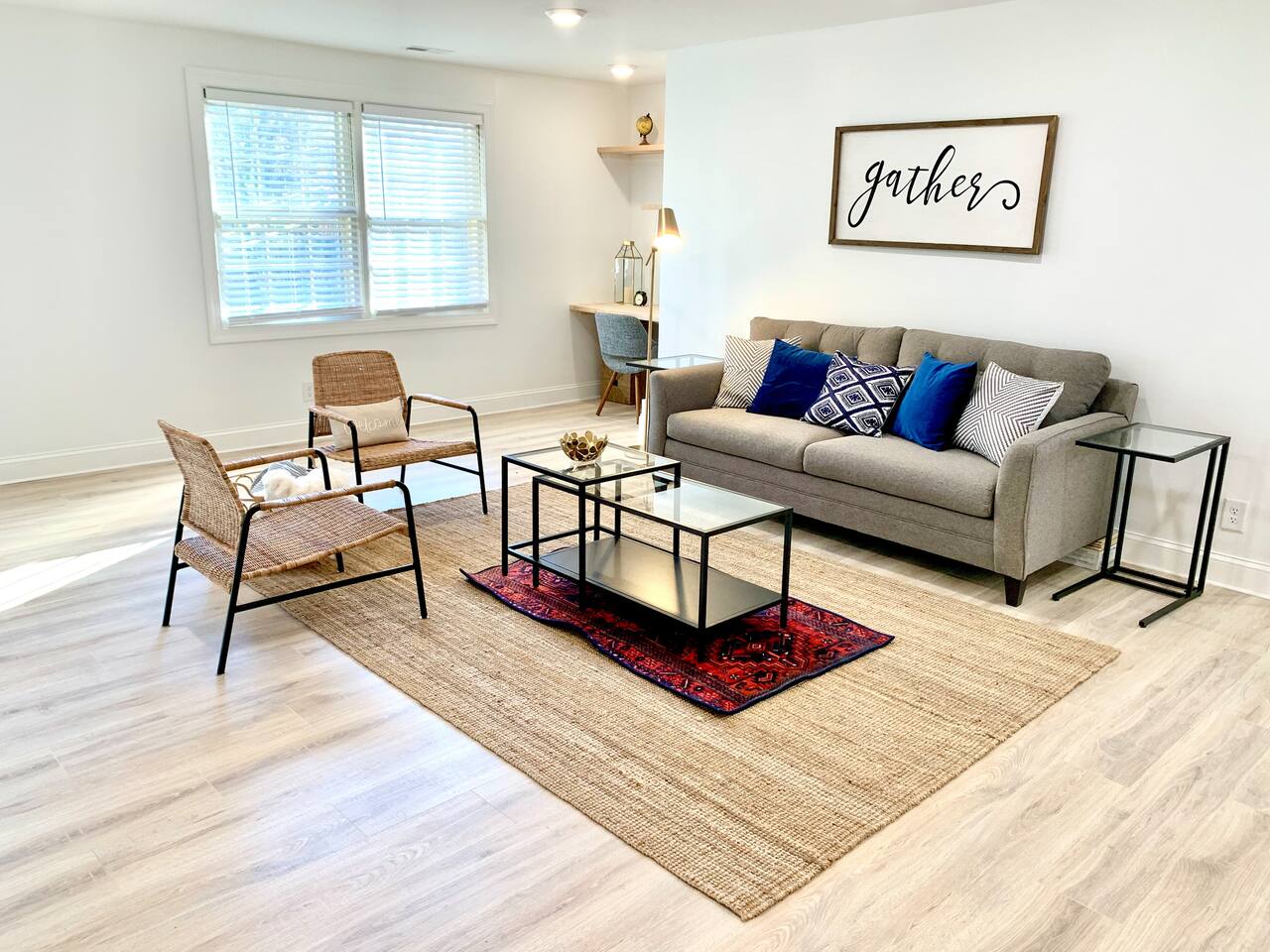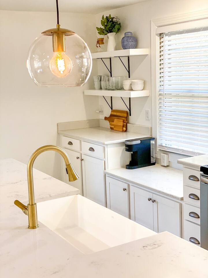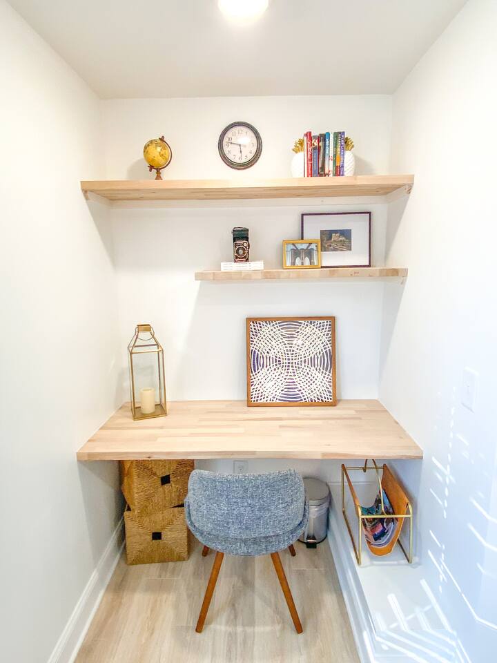 Stunning Loft! Completely renovated -spacious loft in a quiet/safe neighborhood. Enjoy our huge eat-in kitchen with a 9 ft quartz counter top island, new oven, and shaker cabinets . Beautiful floors. Custom butcher block style office desk. Gather and watch movies on our 50" smart TV. Enjoy a King sized bed with a walk-in closet. The large master bath has a free standing tub, tile shower and tile floors. Note: The space downstairs is not included. You are welcome to rent that space as well.
