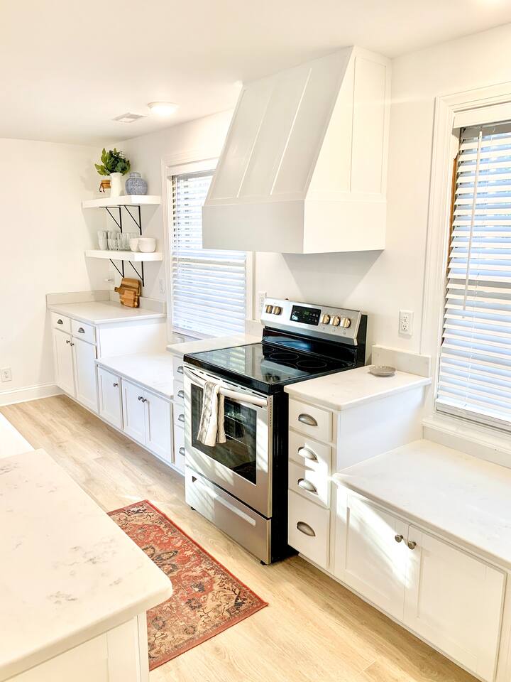 Every part of this home has been newly renovated! We hope you love it. Beds: The master bedroom has a king sized bed and the living room has a queen sized sleeper sofa. Living room: This room is perfect for kicking back and watching a movie. Our 50" smart TV offers Netflix, Amazon Prime, Disney+, YouTube TV and much more. Kitchen: We provide plates, silverware, cups/glasses, basic cooking utensils (cutting boards, knives, baking sheets, pots and pans), coffee pot, seasonings, crock-pot and toaster. Property: This house has a large yard and overlooks a 0.7 of an acre pond. Beautiful! (No fishing or swimming please.)