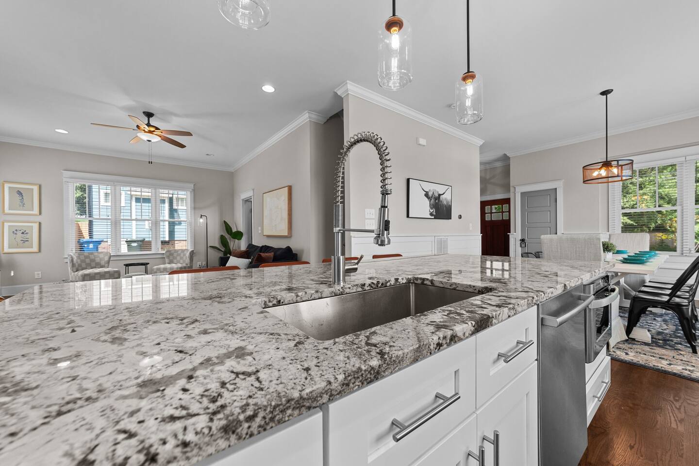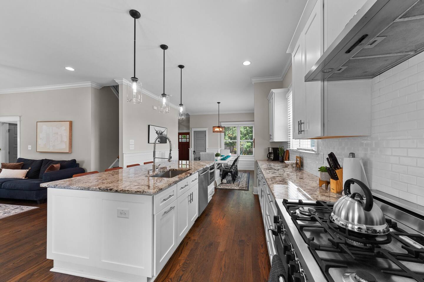 Your family will be close to everything when you stay at this picturesque home, just minutes from a vibrant downtown Durham. You'll love the chef's kitchen including a huge island with drawer microwave, finished hardwoods throughout the home. Relax after a full day of fun in the high end custom tiled bathroom and take a soak in the cast-iron claw foot tub. Enjoy the privacy of the fully fenced in backyard while you have a drink on the deck. Its everything you could want in a vacation home.